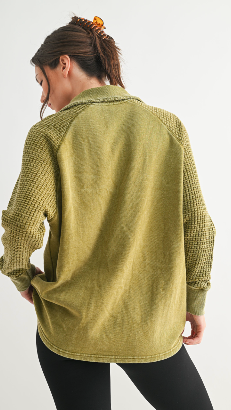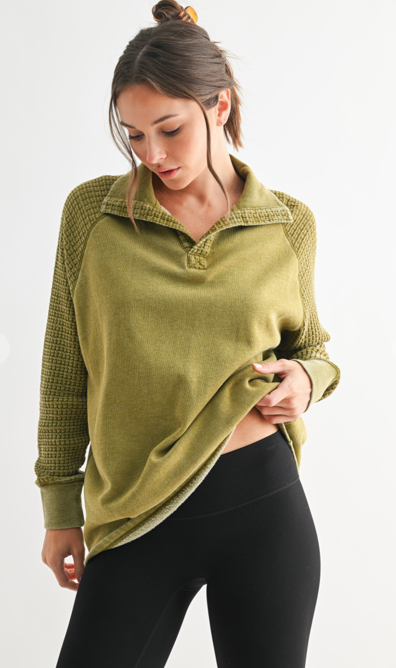 Built for comfort with a rugged edge, the Terrain Henley blends texture and warmth in all the right ways. Made from a soft cotton blend with a cozy fleece interior, it features a mineral wash finish for a worn-in, lived-in look. The collared Henley neckline adds structure, while the sleeves and collar are crafted from a contrast knitted waffle fabric for added depth and utility. A versatile essential for cooler days, whether layered up or worn on its own.