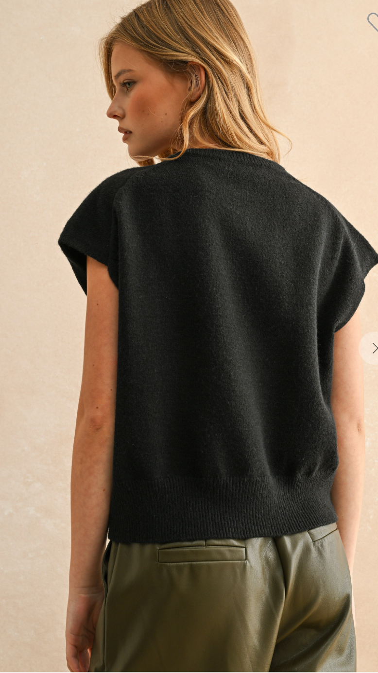 A wardrobe essential, this sleeveless knit sweater features a relaxed fit, ribbed hemline, and soft knit texture. Perfect for layering or wearing solo, it brings effortless style to any outfit.