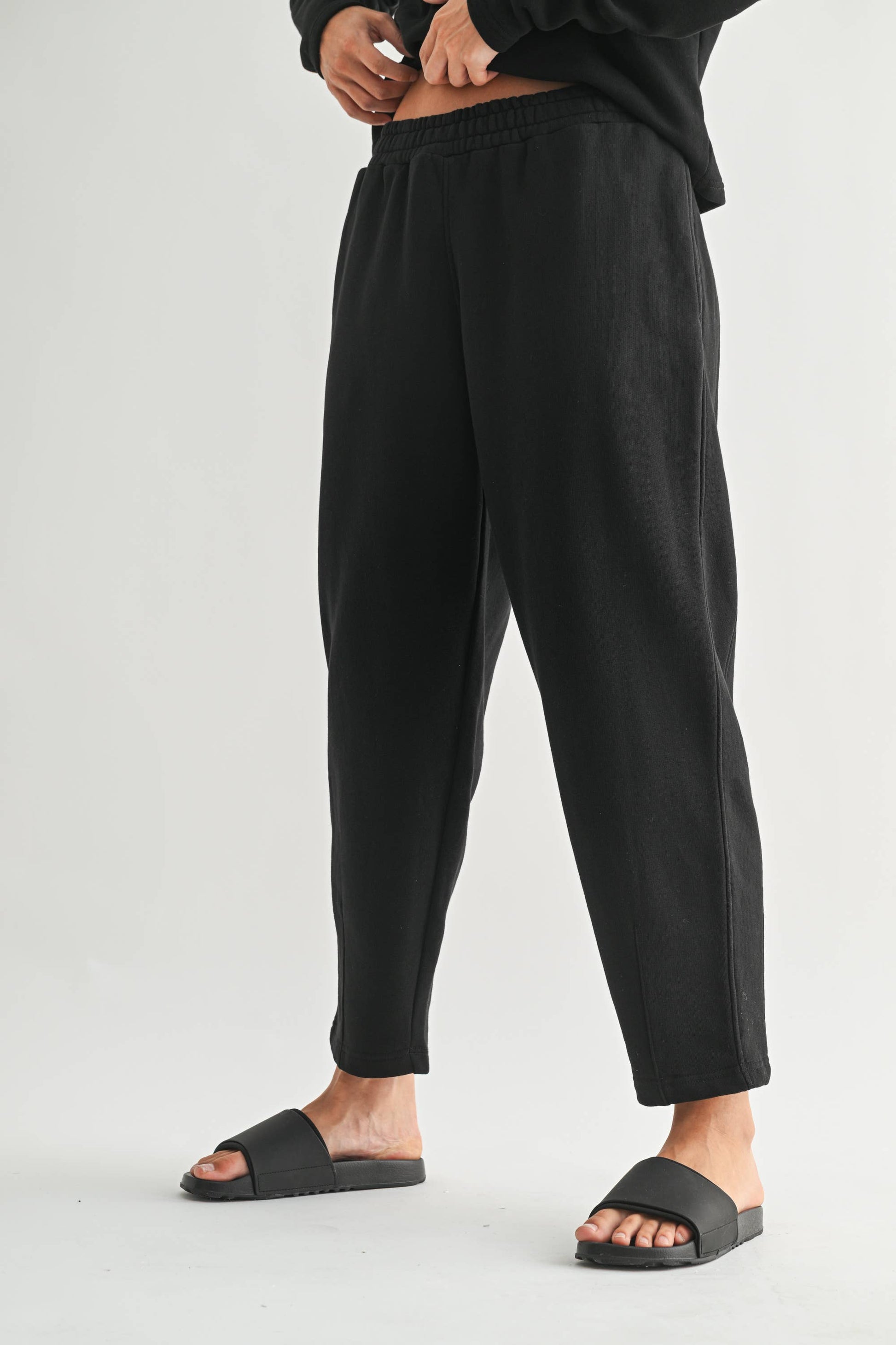The Malibu Air Lounge Pant is your all-season lounge staple—ultra-soft, effortlessly cool, and made to move with you. Crafted from a cotton blend with a plush fleece interior and garment-washed for a lived-in feel, these pants deliver instant comfort. A cropped straight leg adds a modern edge, while the elastic waistband and side pockets keep things easy and functional.