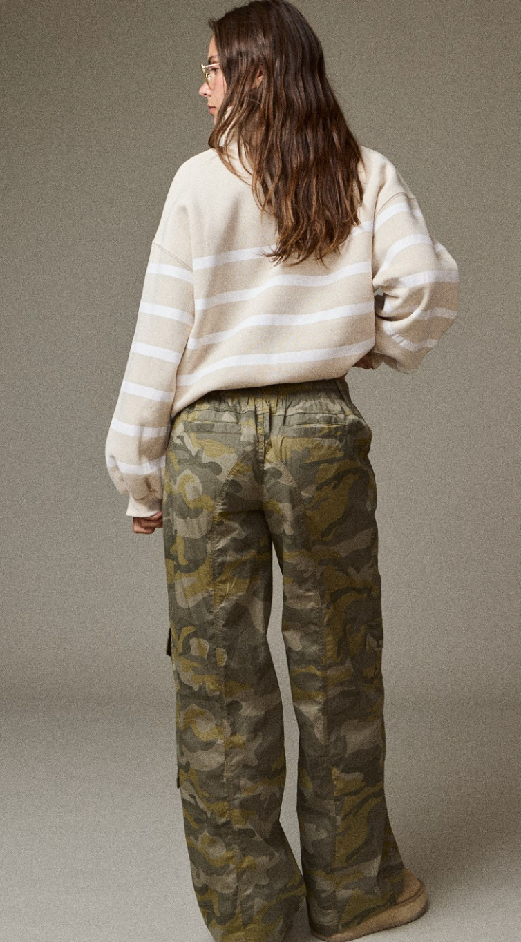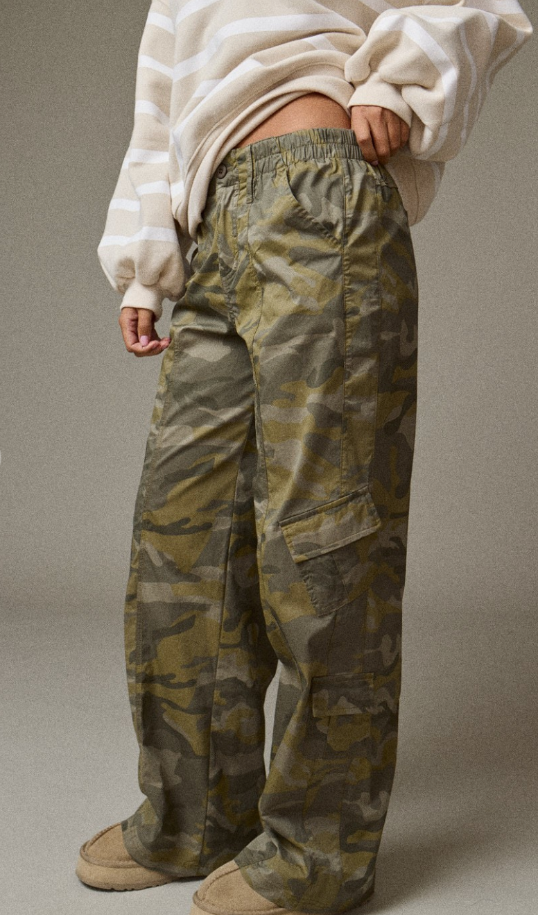 Upgrade your casual wardrobe with our Rory Camo Cargo Pants, featuring a trendy camouflage print and a relaxed cargo silhouette. These versatile pants combine comfort and style, with spacious pockets and an adjustable waistband for a perfect fit. Pair them with a simple tee or hoodie for an effortlessly cool, rugged look that's perfect for any laid-back occasion.Â