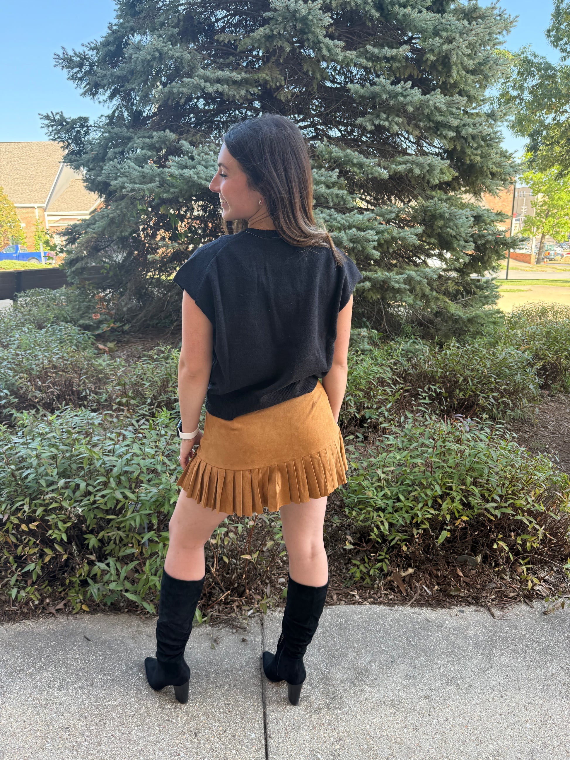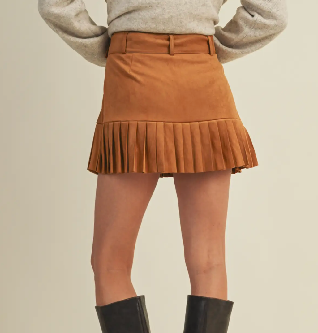 Suede Pleated Tiered Mini Skirt